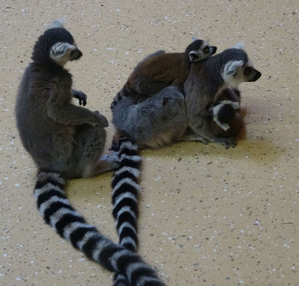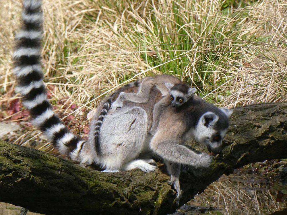 Besonders niedlich wirkt der Anblick, wenn eine ganze Gruppe mit mehreren Jungtieren unterwegs ist: Die Kleinen reiten auf den Rücken ihrer Mütter oder kuscheln eng aneinander, während die Erwachsenen sich um Nahrung kümmern. Diese Kombination aus verspieltem Nachwuchs, auffälligem Aussehen und charmantem Verhalten macht den Katta zu einem echten Star im Zoo und seine Jungtiere zu einem unvergesslichen Erlebnis.