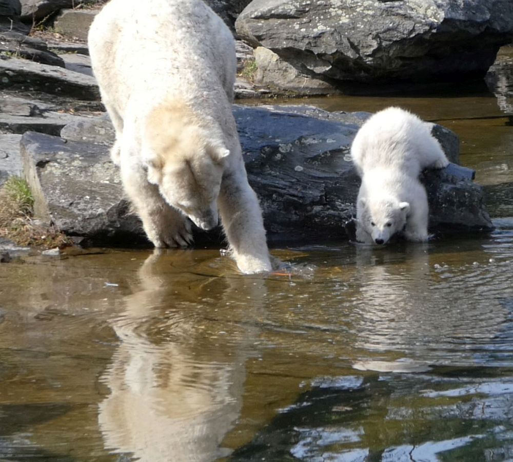 Die Mütter nehmen in den ersten Monaten nach dem Verlassen der Höhle kaum Nahrung auf und greifen fast ausschließlich auf ihre Fettreserven zurück. Sie sind ganz darauf konzentriert, ihre Jungen zu beschützen und ihnen die Welt zu zeigen. Die Kleinen machen es ihrer Mutter dabei nicht immer leicht – sie stürzen sich neugierig in Schneeverwehungen oder versuchen, mit allem zu spielen, was ihnen zwischen die Pfoten kommt.
