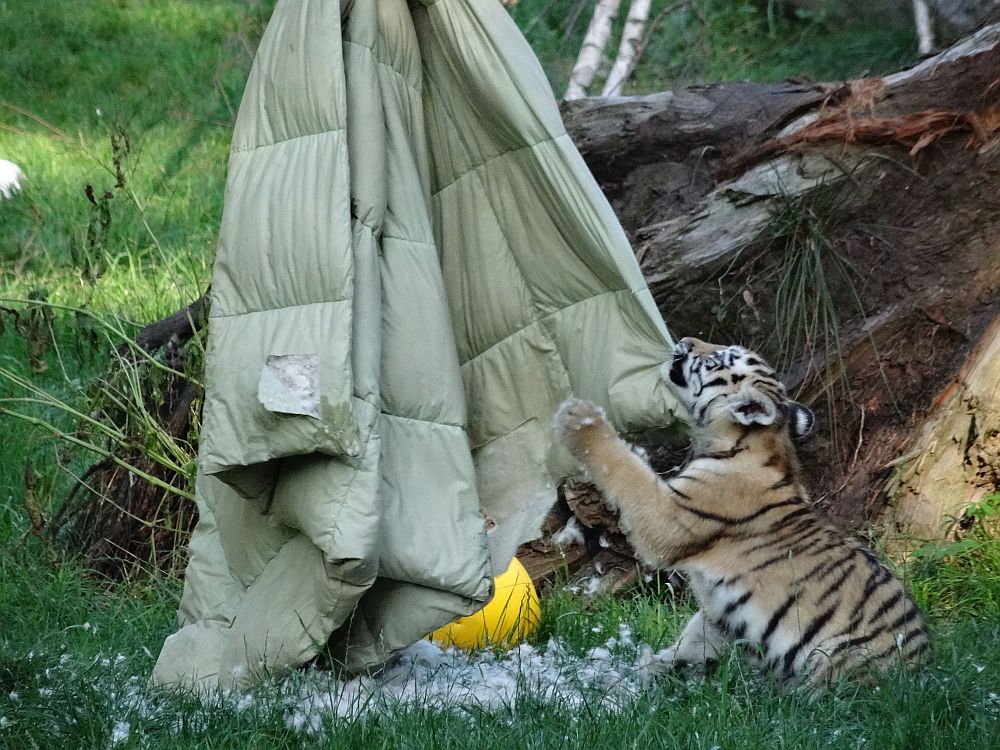 Tigerjungen zeigen schon früh ihre individuelle Persönlichkeit: Manche sind besonders mutig und erkunden die Umgebung furchtlos, andere bleiben lieber im Schutz der Mutter. Für Zoobesucher ist es ein besonderes Erlebnis, Tigerkinder beim Spielen oder bei den ersten Schwimmversuchen zu beobachten – denn Tiger gehören zu den wenigen Katzen, die Wasser lieben.