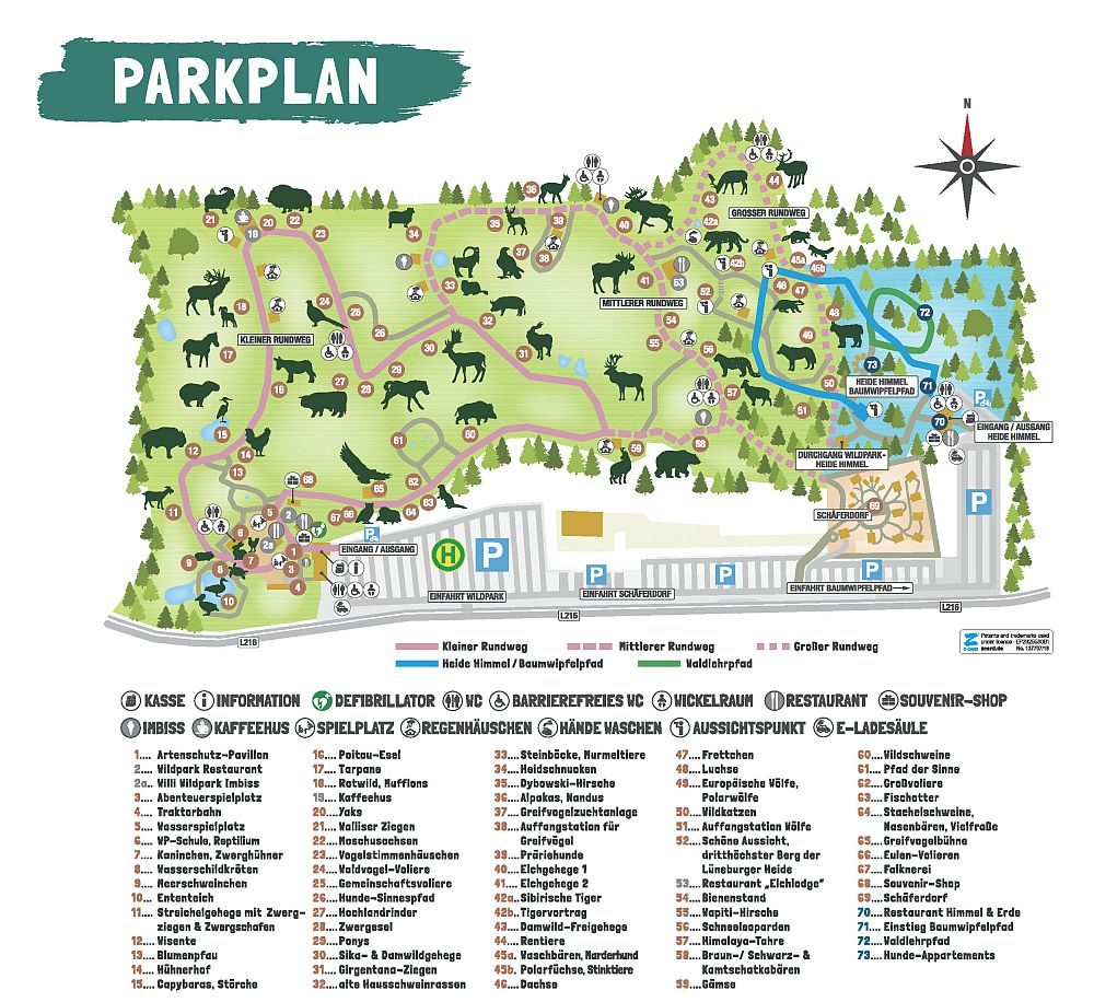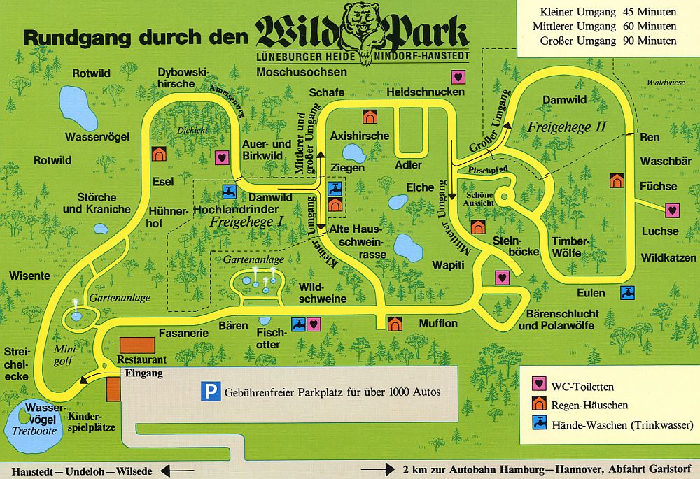 Der Wildpark bietet drei unterschiedlich lange Rundwege, die alle gut ausgeschildert sind.